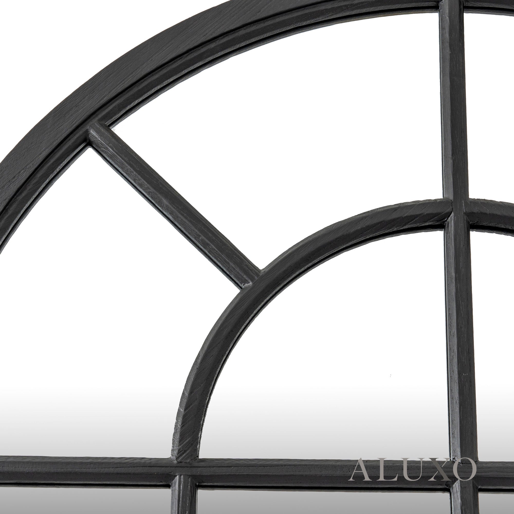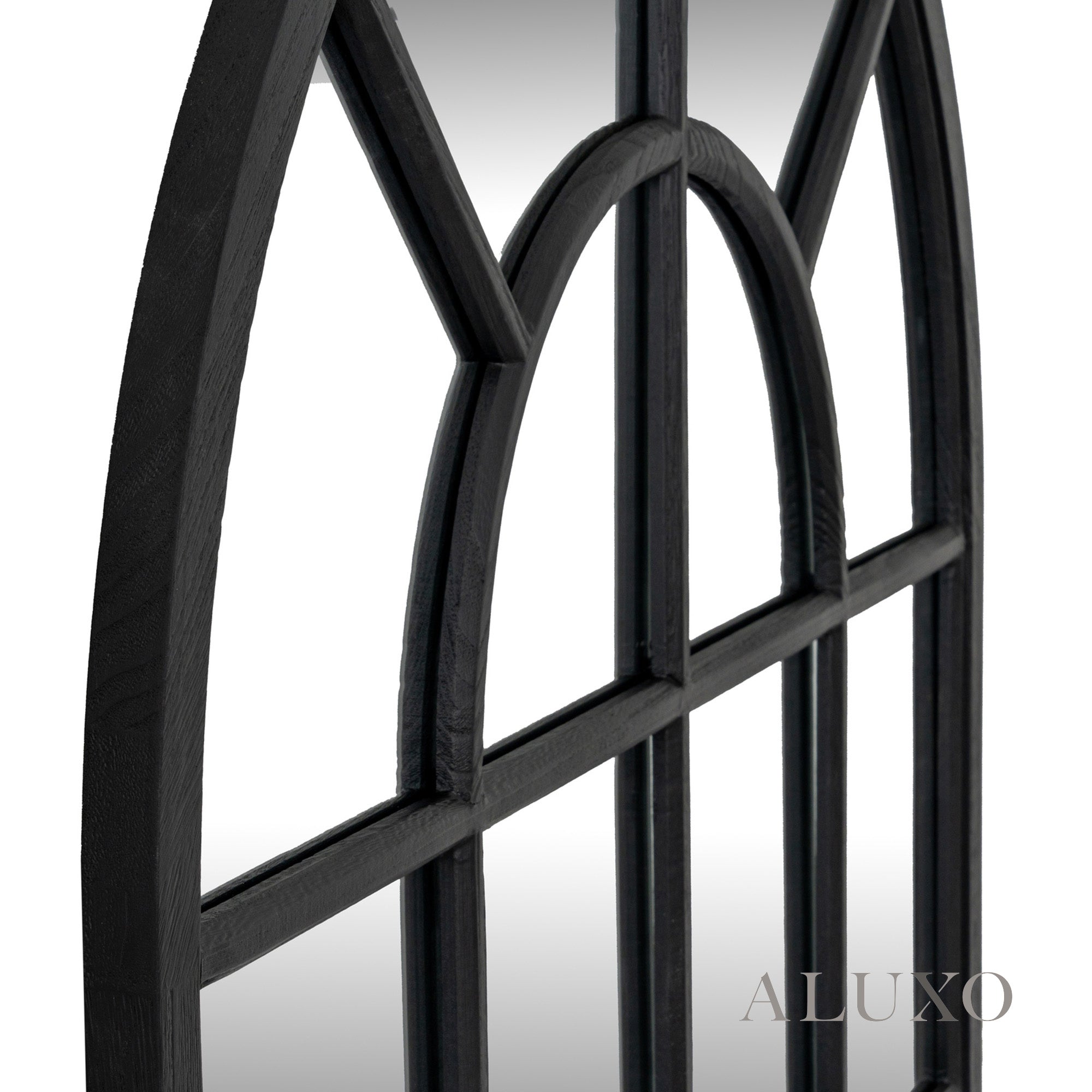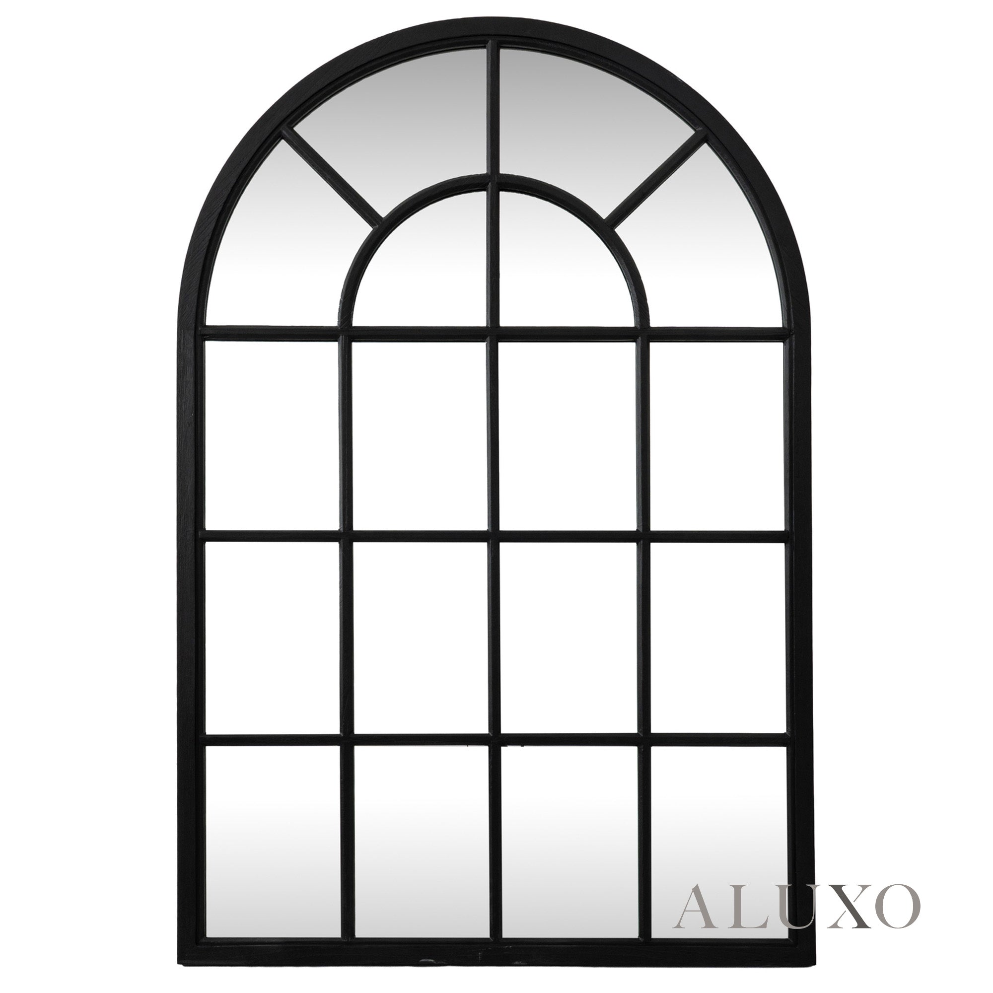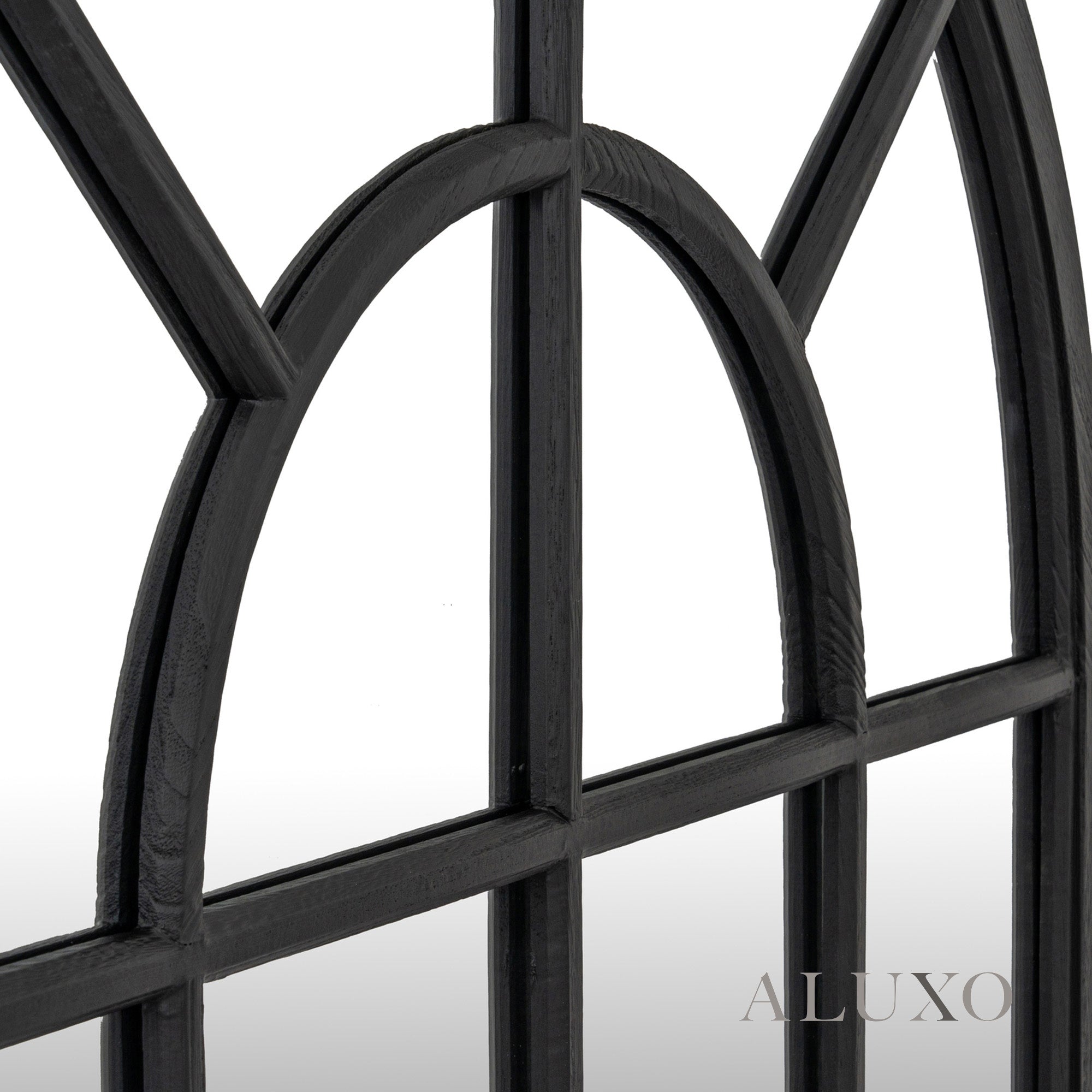 The Torin grand arched mirror makes a striking architectural statement, blending beautiful curves with a refined, bold silhouette. Reminiscent of heritage window designs, the black wood frame outlines charming panels that instantly add depth and dimension to any contemporary or traditional interior. Aluxo-Track Aluxo-TrackCopy