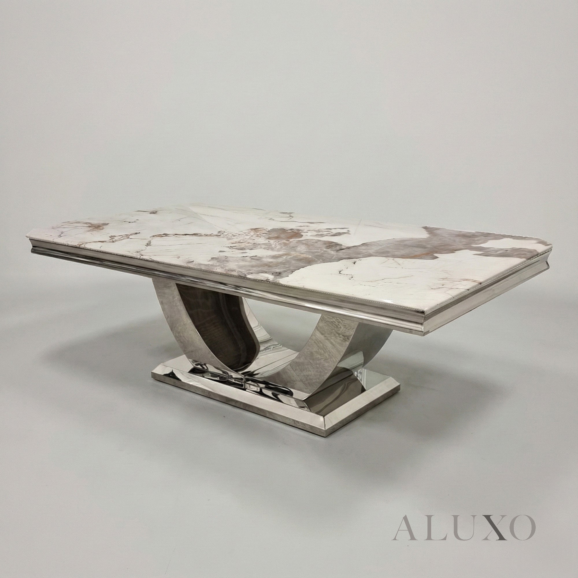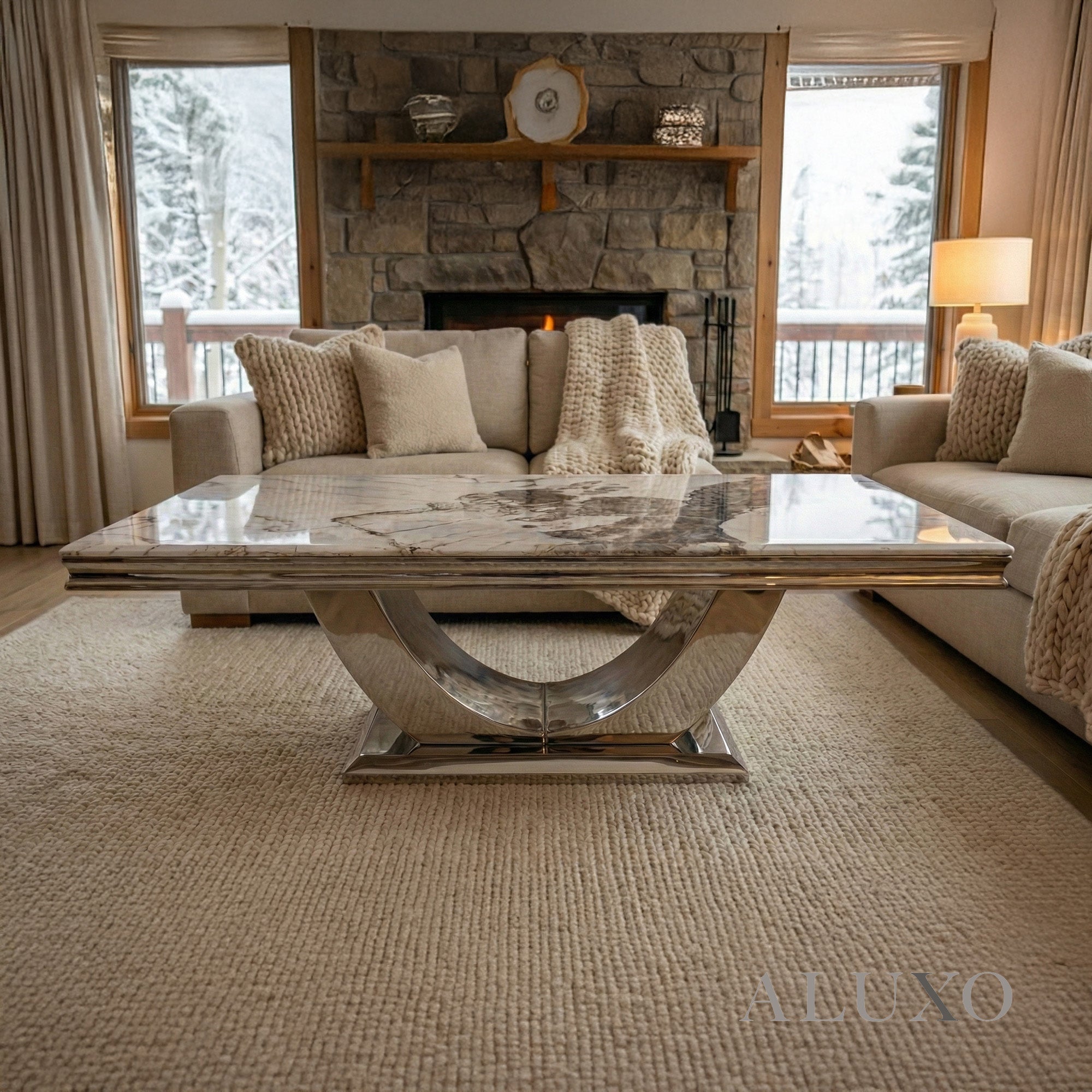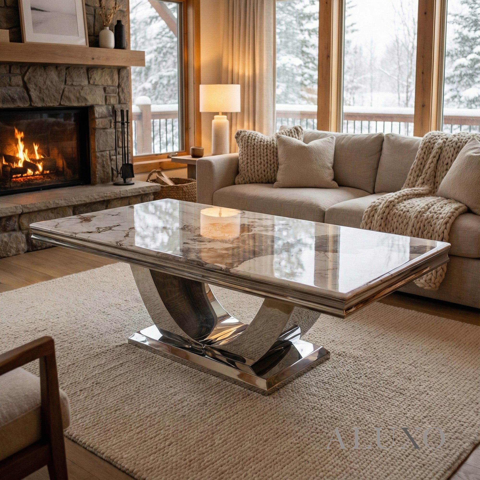 Transform your living space with the Urban 130cm U Stand Chrome Coffee Table, featuring an elegant cream marble-effect top and a polished stainless steel U-leg base. Designed to complement contemporary interiors, this table offers both timeless style and everyday practicality. Aluxo-Track:AnkerChromeCreamMarble