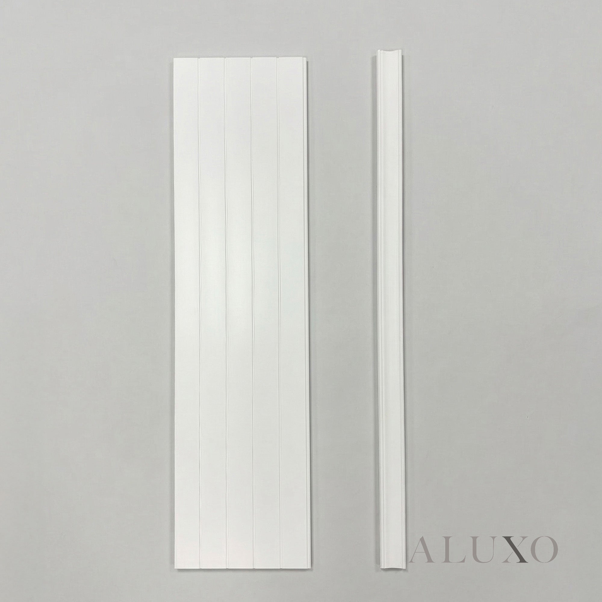 Elevate your interior with the clean, bright aesthetic of our Slat Style Wainscoting Kit in Crisp White. Designed for those who appreciate the sharp lines of contemporary fluted textures combined with the timeless appeal of traditional half-wall panelling, this kit provides a professional, high-end finish. The White finish acts as a brilliant canvas, amplifying natural light and creating an airy, sophisticated atmosphere in any modern home. Aluxo-Track Aluxo-TrackCopy
