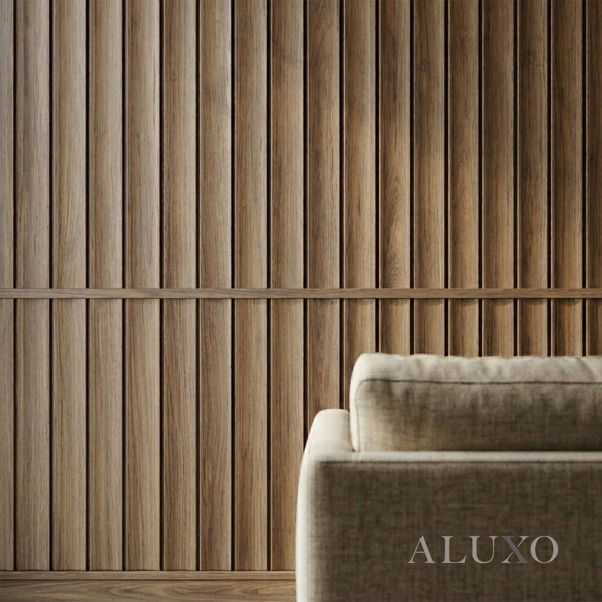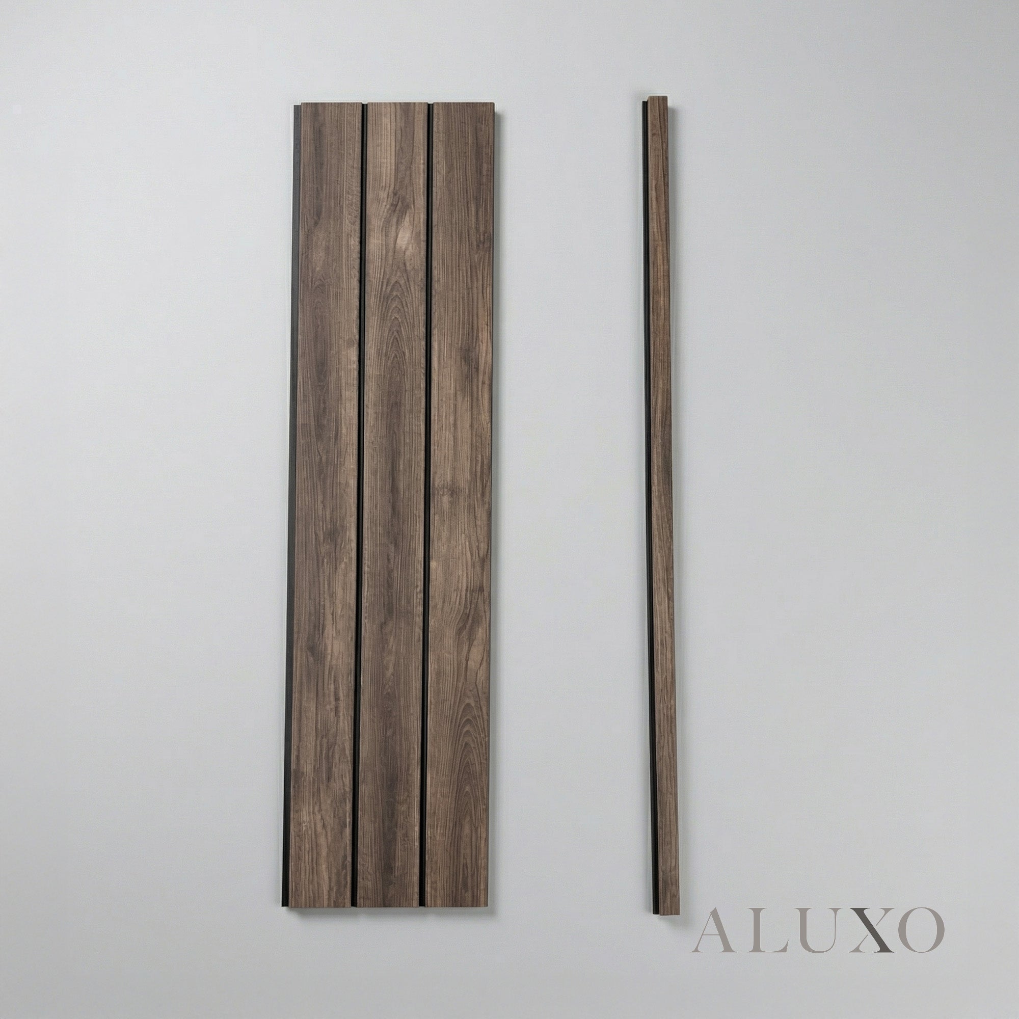 Constructed from High-Density Polystyrene (PS), these panels offer the aesthetic weight of real dark timber with superior modern performance. Unlike traditional wood or MDF, our PS material is 100% moisture-proof and impact-resistant, ensuring your panels remain pristine in hallways, dining rooms, or even sophisticated bathroom settings. The 10mm deep "Wave" tambour-style curves create a premium play of light and shadow, instantly elevating your interior walls. Aluxo-Key Aluxo-KeyCopy